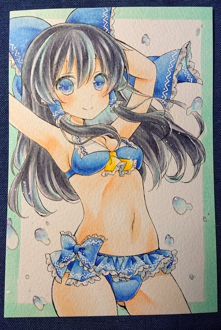 ポスカサイズだけど1枚できたぞ! 水着の青霊夢