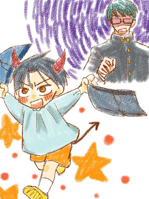 「ウェーーーーイ!しんちゃんのぱんつ!!!!」 「返すのだよこのクソガキ!!」 ※腐じゃないけどたかみどと同じ生産工場で作られたものなので腐に見えたらすみません #黒バスショタ版夜のお絵かき60分一本勝負