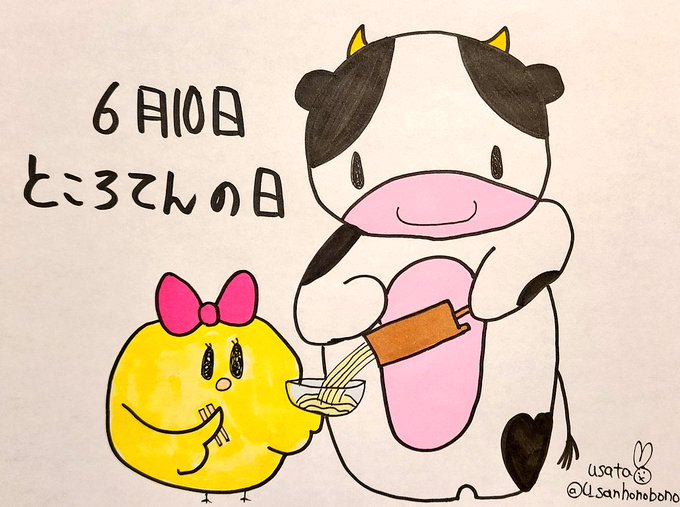 つるつるで喉ごしの良いところてんが今日のうーさんとピヨ子のおやつなのでした🐮🐥✨
