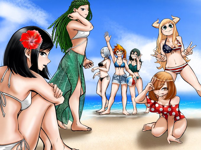 タグお借りします 🍅🥀👻👊🦎🍄🦄 絵文字でキャラを表現出来るの良いですよね… B組大好きです 次はB組男子描くぞ! #B組女子水着祭り2020