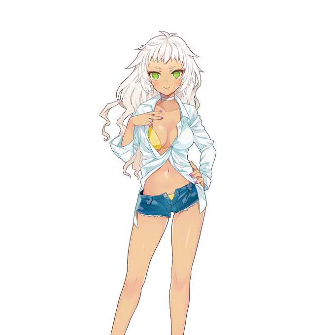 ★31日18時からSRミレーヌさん新登場★ 「この星の水着はこういう感じなのね!ふふっ…やっぱりキミの星は色々と興味深いね…!」 #ウチ姫