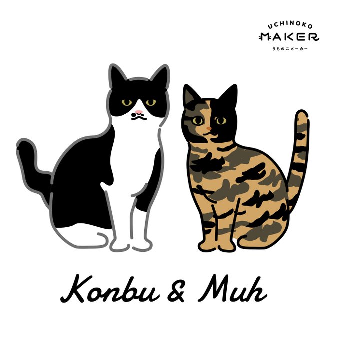 こんぶちゃんの可愛いジト目(飼い主さん公認😹)とむーちゃんのサビ柄の表現にこだわりました✨むーちゃんの優しいお目目も表現したくて何度も調整しました🥺