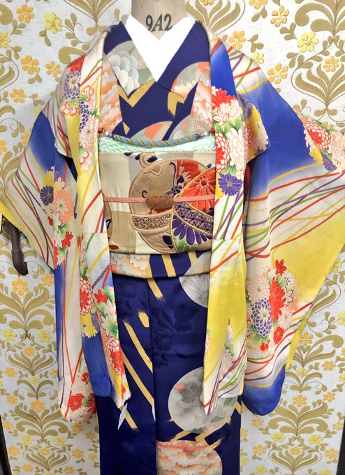 #今日のトルソーさん は異国のタイルみたいなレトロ柄のカラフルなお着物コーディネート。全てコンディション◎です❣️