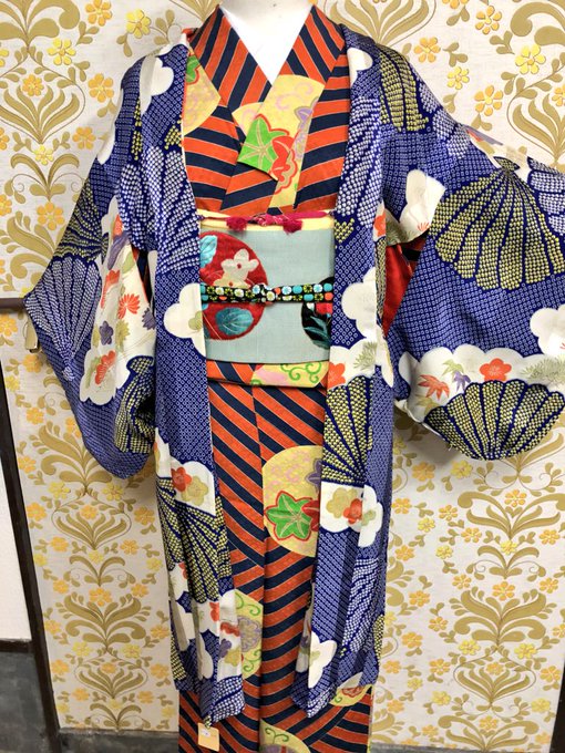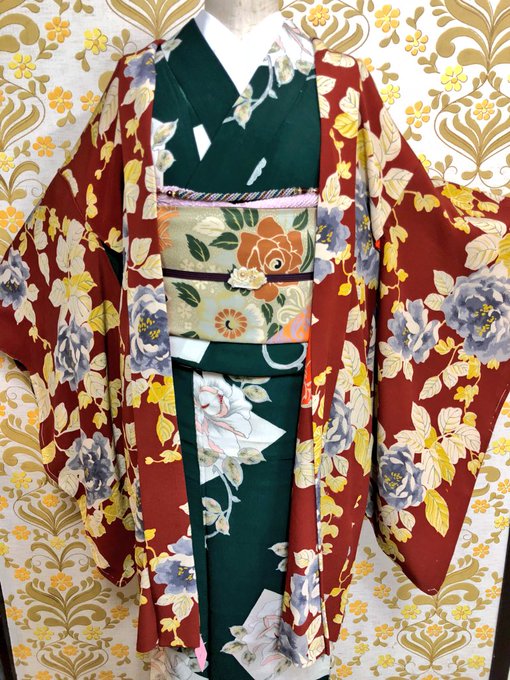 #アンティーク着物 #振袖 #着物コーディネート #ヰロハ狐 #振袖コーディネート #キモノ葉月
