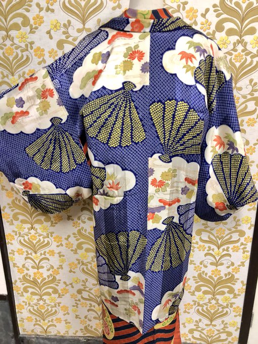 #今日のトルソーさん は古典柄に鳥さんもいる華やか小紋のコーディネート。身丈159.5.裄64.5㎝ #アンティーク着物 #着物コーディネート #キモノ葉月