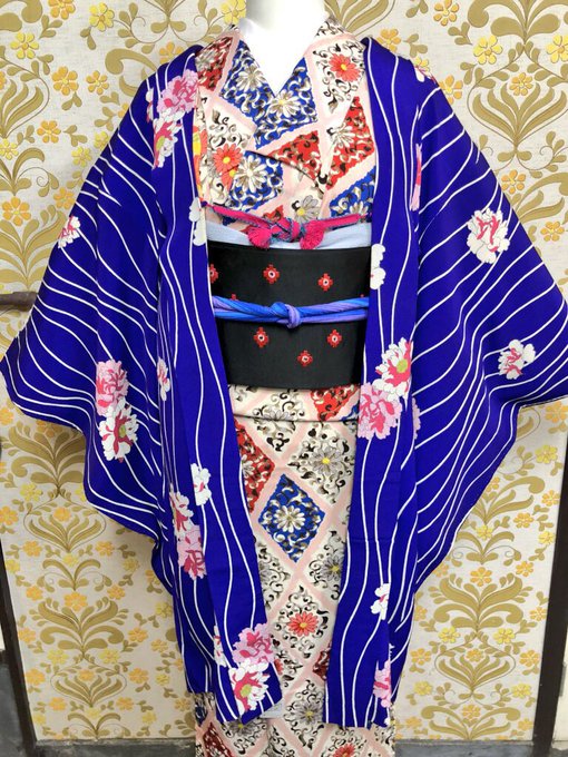 #今日のトルソーさん によろけ縞に牡丹と薔薇の長羽織を合わせました🌹