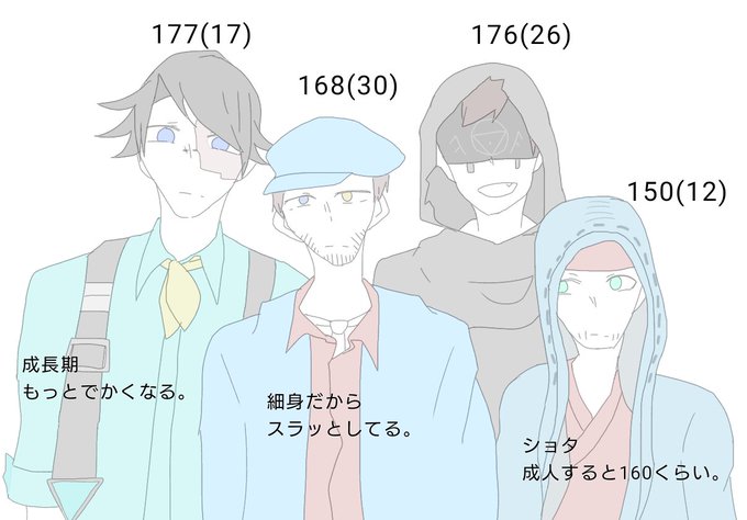弊荘園のよく使う鯖の身長差と衣装。使用度によって年齢が前後するバグがある。