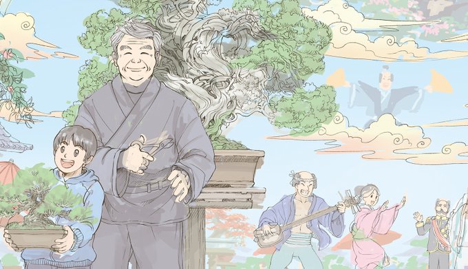 今回は、春花園BONSAI美術館さんにご協力いただき、盆栽モチーフの水墨イラストを約40点描きました。