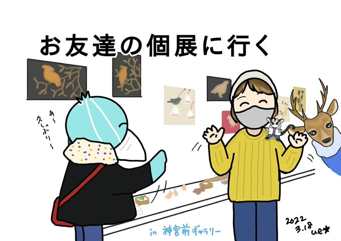 お友達の個展に行く。🖼 ギャラリーでバッタリ! 久しぶりのお友達にも会えました❤️ #ue☆ #ueueart #絵日記 #毎日絵日記 #ハシビロコウ #ハシビロコウ好き #フクロモモンガ #鹿 #友達の個展 #シューベルトくん #シューちゃん #シューちゃんの絵日記 #イラスト #ウイ #art #illustration #shoebill