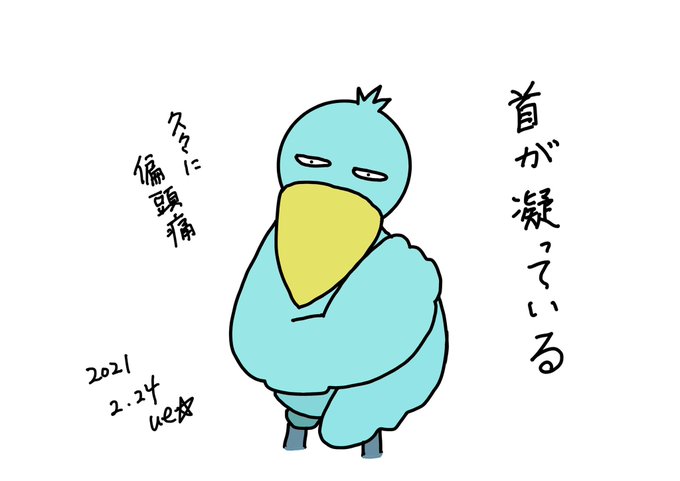 首が凝っている。 肩もだけど。 久々に偏頭痛になり朝方薬飲みました。💊 我慢しない方がいいですね。😅 #ue☆ #ueueart #絵日記 #毎日絵日記 #ハシビロコウ #ハシビロコウ好き #首が凝っている #シューベルトくん #シューちゃん #シューちゃんの絵日記 #イラスト #ウイ #art #illustration #shoebill