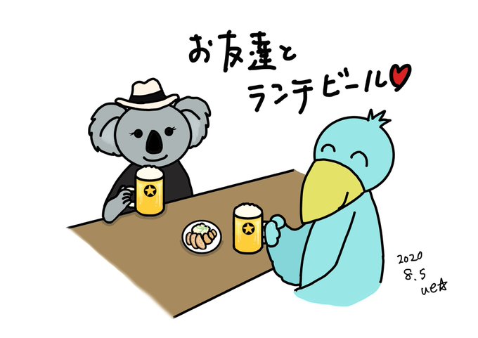 お友達とランチビール🍻 #ue☆ #ueueart #絵日記 #毎日絵日記 #ハシビロコウ #コアラ #ランチビール #シューベルトくん #シューちゃん #シューちゃんの絵日記 #イラスト #ウイ #art #illustration #shoebill