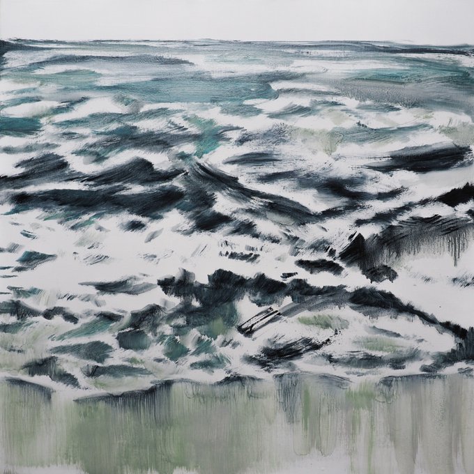 単色の大きいのは映像で見たのを思い出しながら描いた海。(タルコフスキーのドキュメンタリーかなにか)