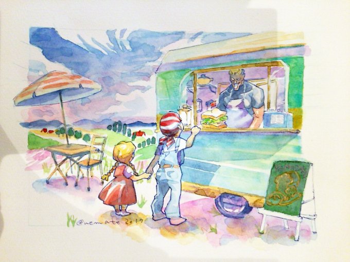 まつこさん@mojyavoltage6とぺこさん@peconabeから#ArtTrain の乗車券をいただきまして!🐄せっかくなのですごく昔の絵を選んでみました