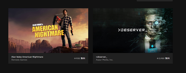 『>observer_』『Alan Wake’s American Nightmare』Epic Gamesストアにて無料配布中 https://t.co/MjuewMhdgM