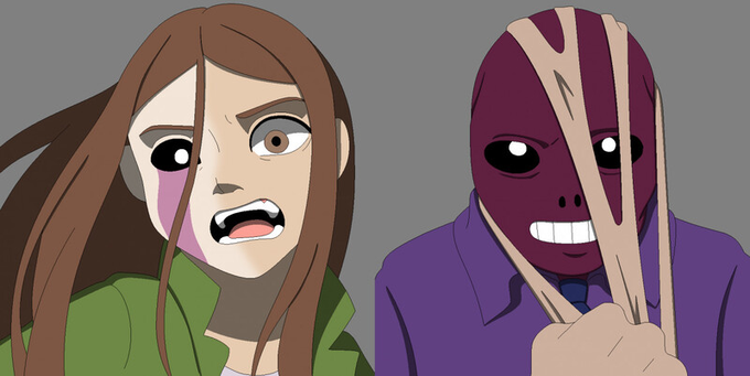 (We see a Purple bunny moaning at them)