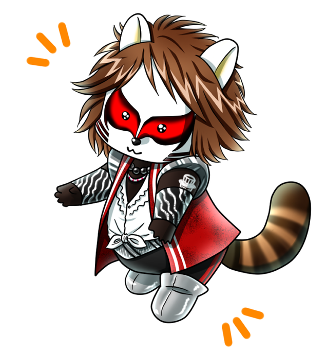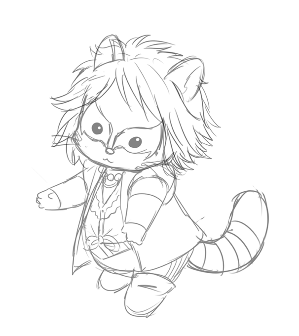 #このタグを見た人はラフ画とその完成絵を見せる #ダミアン浜田 #ジェイル大橋 最初、ダミアン陛下は地上を睥睨されておられる予定だったのでラフから目線が変わった。レッサーパンダ代官はこういうポーズのレッサーパンダの画像がありましてね~可愛くてこのポーズにした(^^*)