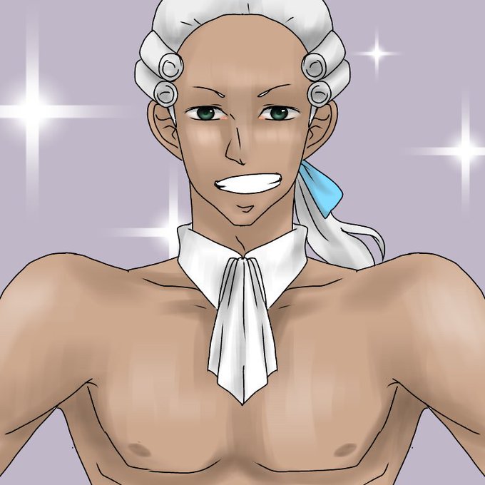 #イラスト王国 寝る前に1枚目〜 お題は「マッチョな貴族」でした☺w 貴族のかつらになんか苦戦した🙄🌀 あと無駄にえり以外脱がしました😋👌w