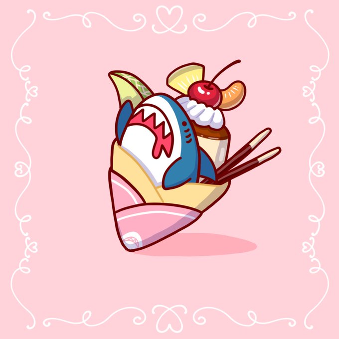 さめアラモードクレープ🍮🍒 #イラスト #オリジナル #オリジナルイラスト #クレープ