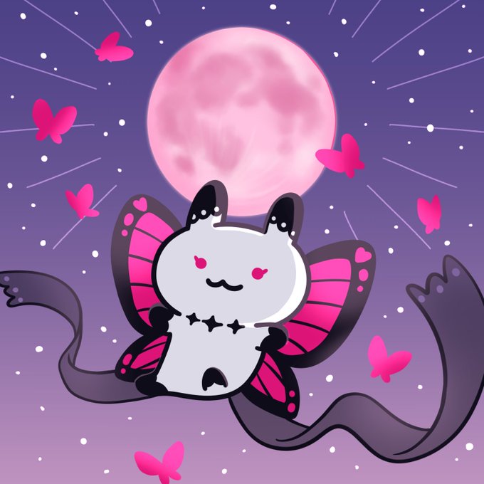 ピンクムーンの出会い🎀☾ #イラスト #オリジナル #オリジナルイラスト #うさぎ #ピンクムーン