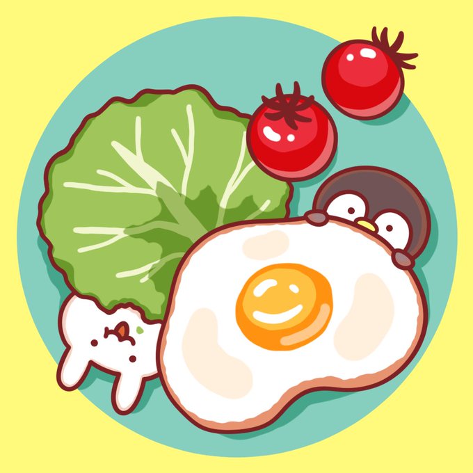 あさごはん食べよう🍳 目玉焼きはマヨネーズ派です。 #イラスト #オリジナル #オリジナルイラスト #うさぎ #ペンギン