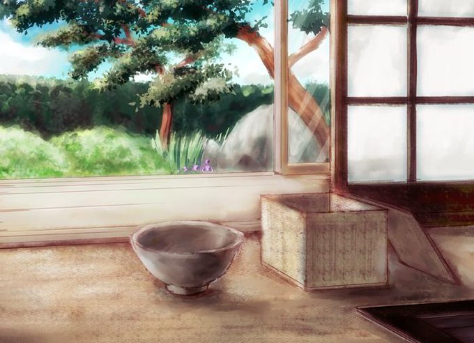 一時間半くらいかかりました反省 何かの準備… お題【茶碗】#背景版深夜の真剣お絵描き60分一本勝負