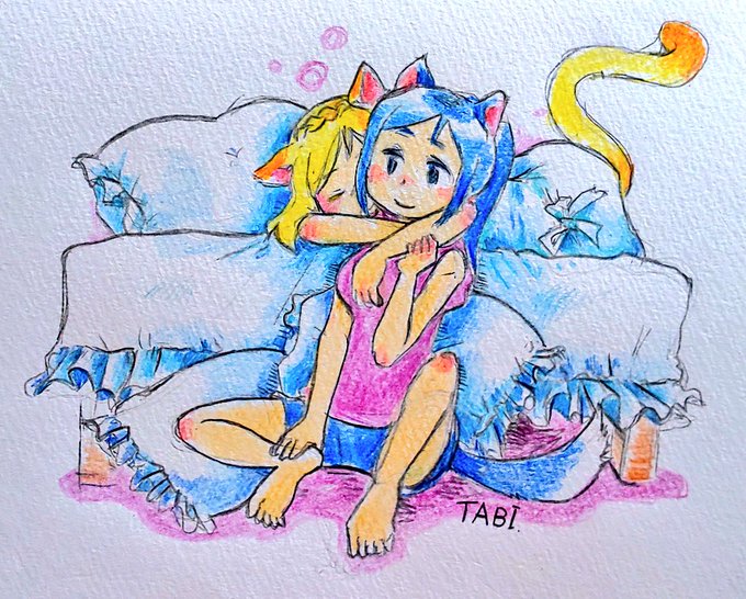 ワンコ果南ちゃんとニャンコ鞠莉ちゃん🐶🐱 背中向けてたのに果南に気付いてゴロン。と。猫ちゃんだから柔らかそう。