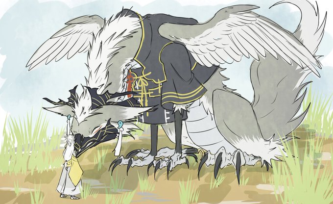 まとめて上げる予定だったけど時間がないのでとりあえずこれだけ。 前に描いたドラゴン育ててるグリフォンパッパ。