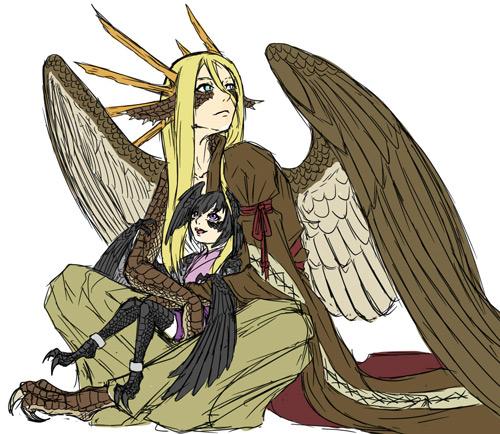 さらに異種親子。 本来竜と鷹なんだけど、たまたま描きたかったから先に擬人で描いた。 てきとうに描いたから後でまたデザインがころころ変わると思われる。
