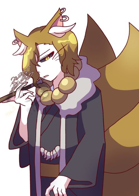 《キャラ紹介🦊》 紺野九三郎(こんの きゅうざぶろう) 九尾の狐です。 白目が黒いキャラクターは主人公の春来に次いで2人目となります。また、piyoNHの作品下では初の喫煙者キャラです。要素詰めすぎなのはいつものこと??