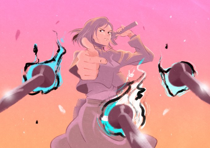 i was commissioned by yans to do this fun little piece for @ShieldedSun 's birthday 💗 i super enjoyed working on this so TY rly!! hahaha (actually arm muscles are now my new fav thing to draw) plus i love the fact that my first ever toji art is for justine hehe.