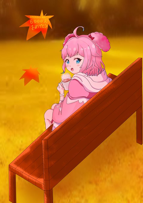 ベンチでほっと一息いれる我らがピンクカフェマスターゆきももちゃん(@yukimomochaaaan)を描きました。