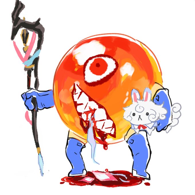 将軍(@omuraisu_syougu)が描いてくれた過去の禍々しいイクラさんシリーズ(4枚目は擬人化)、大切に保存してたので貼って自慢しますね♥️ 将軍はどんなクリ~チャ~を生み出したのか、どうか認知してください♥️
