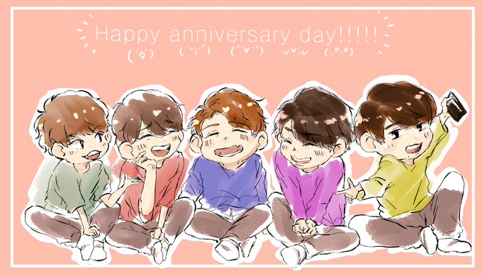 結成日おめでとう! 危うくイラスト描きながら泣きそうになってしまった〜 いつか5人で集まって、あの時ああだったよ、この時こうだったよって笑いながら話してる姿が見れる日が来るまでいつまでも待ってます! 5人で居てくれてありがとう! 💚💜💛💙❤️ #嵐結成日 #嵐