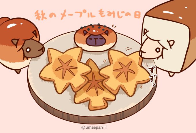 秋のメープルもみじの日🍁🍞 #うメェ〜ぱん #ゆるいイラスト #秋のメープルもみじの日