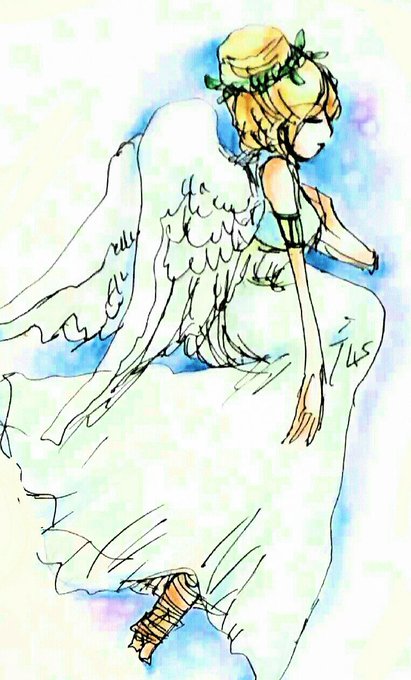 あああアナログで描いたけど 色とか飛ぶ飛ぶ 手癖で描いた天使絵