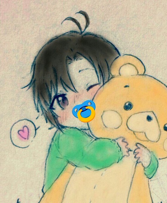 描いたバブ達についったのおしゃぶりステッカーを貼る遊び