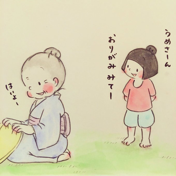 小さな小梅さんが必死に考えたやさしさに、痛みもすぅっと消えていく気がした 梅さんなのでした👵🏻🌸 ・ #梅さんと小梅さん