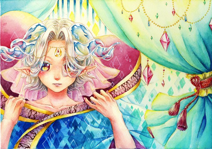 額の左側に鉱石の角を生やした少女。
