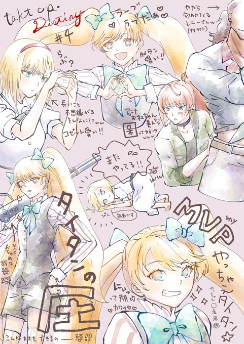 #タクトオーパス 4話好きなとこ感想画。可愛い女の子たくさん描けてシアワセ。勧善懲悪ものだった。タイタンとお別れかぁ。。3人目のムジカートに期待!ところでタイタンは変身しないのかな。運命ちゃんとセットで描きたい…