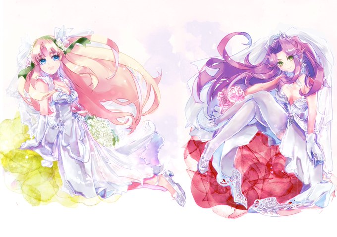 リース&アンジェラでジューンブライドかつお祝いということで…! たまにフィギュアにある衣装白バージョンってときめくよねぇ発想から。 30周年おめでとうございます✨ #聖剣伝説30周年