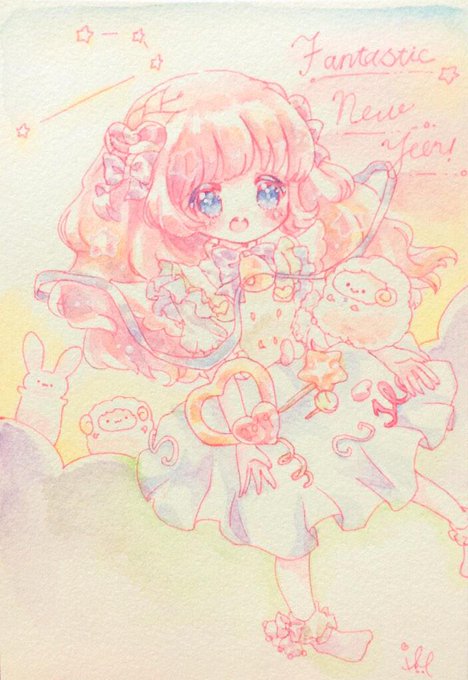ことしの年賀状だった絵!目の塗り方がお気に入りだけどいまは出せない塗り方TωT♡ #今年1番好きだと思える絵を載せよう
