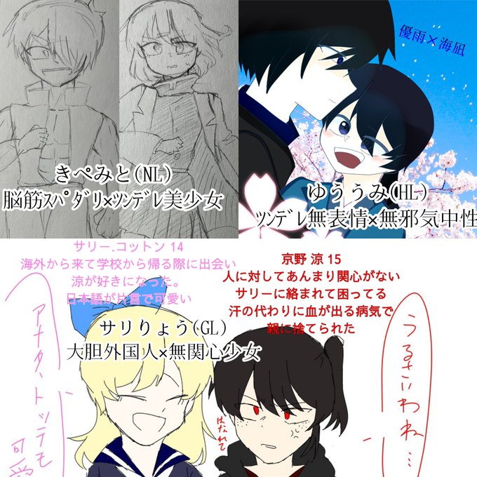 (1、2枚目過去絵/3、4枚目今日) やっぱり優雨の顔が良くなりすぎてる どうしよう(興奮) 理想の優雨の顔に描けるようになったよ