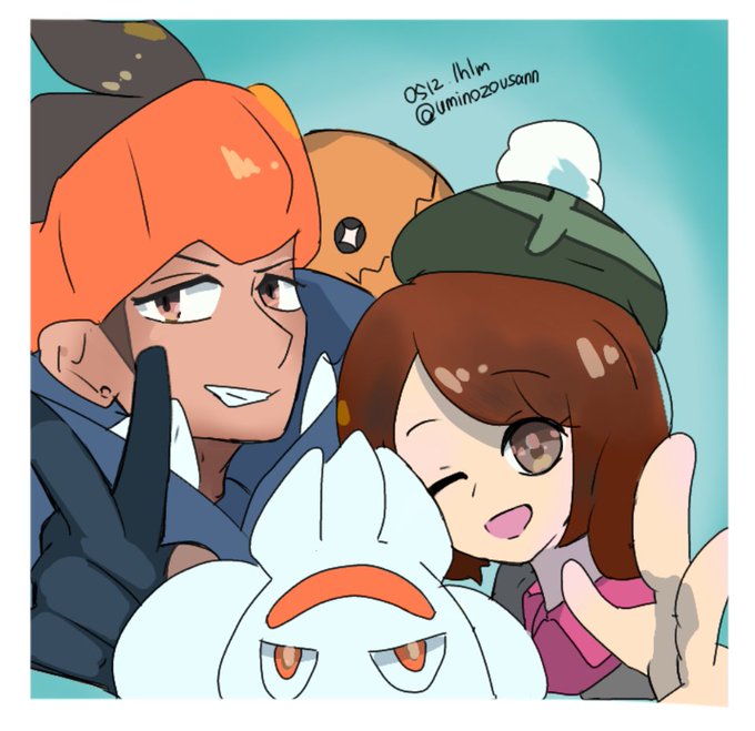 「ブイブイ!」 ユウリとラビフット(1分オーバー) サブテーマよりキバナとナックラー #ポケモントレーナー版深夜の真剣お絵描き60分一本勝負