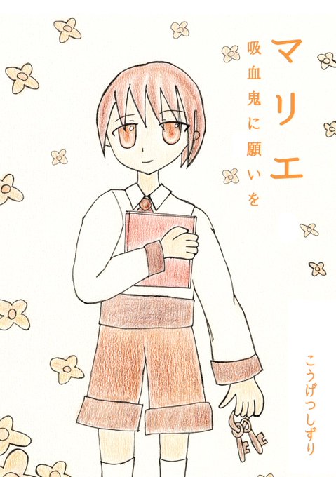 1枚目:「マリエ 吸血鬼に願いを」の表紙イラストです。実際の表紙ではトリミングしていますが、原画はこうなっています。