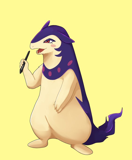 ヒスバクちゃんの立ち絵、楽しくて衣装とか表情差分いっぱい描いちゃった❤️