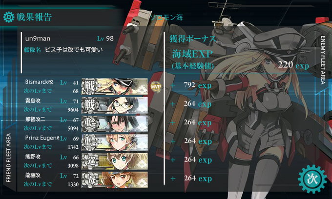 E2丙でクリアしました 雲龍ちゃんがドロップしました(!)
