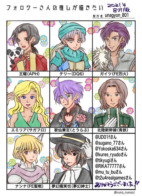フォロワッさんの推しを描くタグです(遅筆であった) @UD01f さん @sugano_77 さん @Yokoska634 さん @kures_ryudo さん @tikyugi さん @RIKA77777 さん @mu_tu_bu さん @t2u4realgames さん いいね&リプありがとうございましたv 新鮮で楽しかったですvv #うな絵