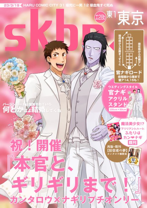 12/17の「本官と、ギリギリまで!DR2023」にて官ナギ新刊『n年後のひとかけ』頒布予定です!辻バレ成立後n年経って同棲生活にこなれた官ナギの日常小話本です。 表紙含めて絶賛作業中ですがなんとか絞り出すつもりなので部数アンケートにご協力いただければ幸いです🙇 https://t.co/I3FFn0qDvI