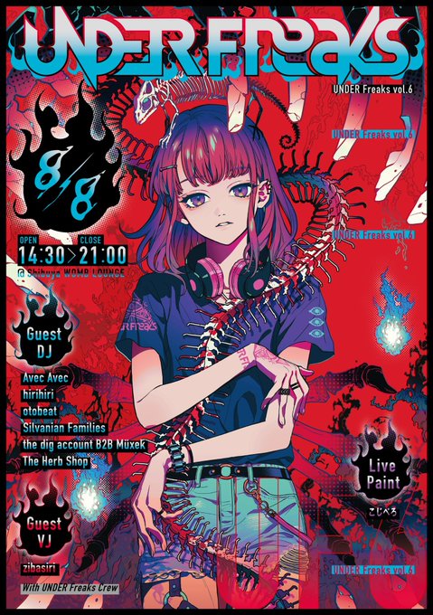 本日発売、pixiv様監修のアートブック『VISIONS 2022 ILLUSTRATORS BOOK』にて秋赤音(@_akiakane)先生のページにUNDER Freaksのフライヤーイラストが掲載されています!