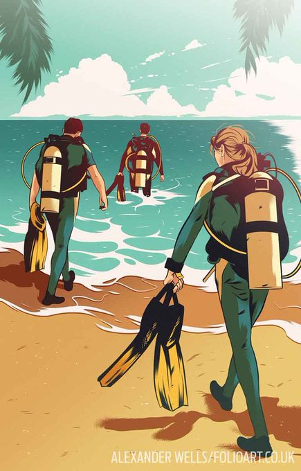 I want to know a lot about animation or cartoon related to scuba snorkeling swimsuit.